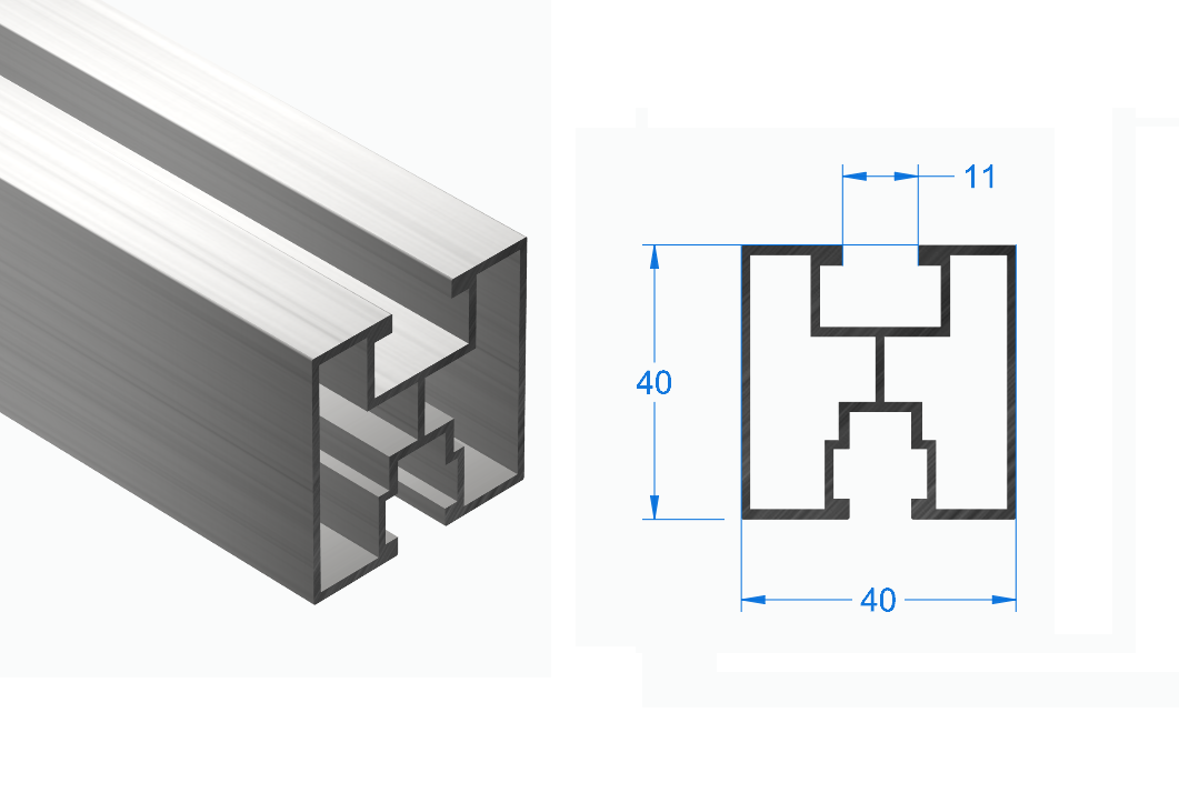 Алюминиевый монтажный профиль 40х40, без покрытия