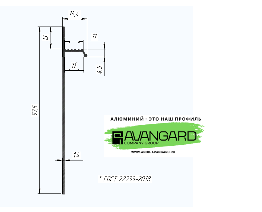 Теневой плинтус скрытого монтажа 98 мм, АНОД СЕРЕБРО