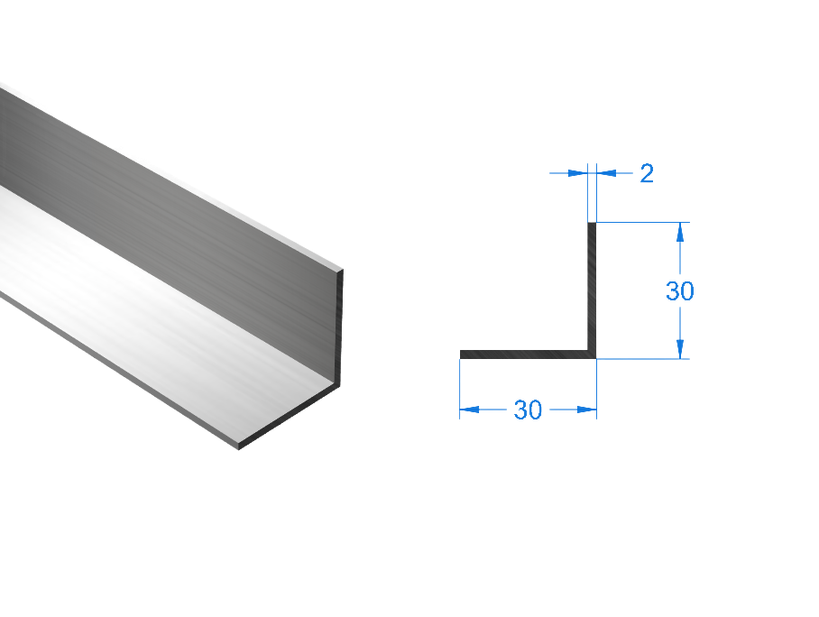 Уголок алюминиевый 30х30х2 мм, АНОД